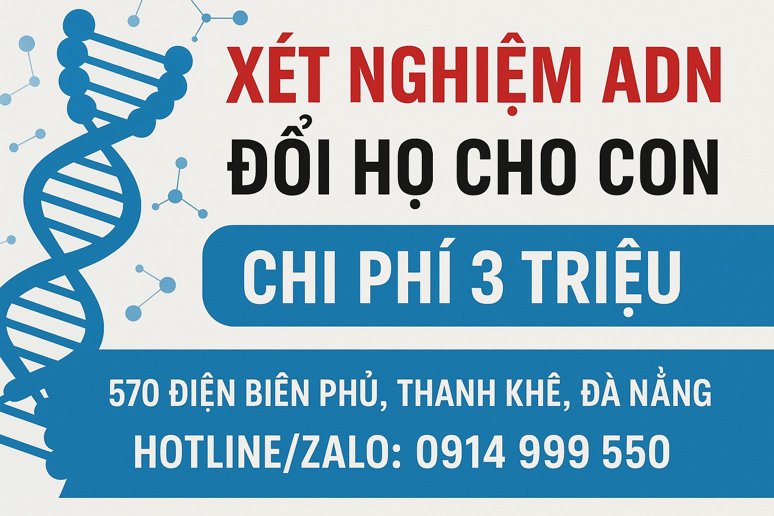 Với chi phí chỉ từ 3 triệu đồng, dịch vụ xét nghiệm ADN làm giấy khai sinh tại Đà Nẵng là giải pháp nhanh chóng, chính xác và hợp pháp giúp cha mẹ hoàn tất thủ tục hành chính một cách thuận tiện.